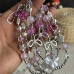 بند و آویز گل رز صورتی و پاپیون
