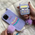 قاب موبایل آیفون باربی نوستالژی آیینه ای صورتی + آویز ست