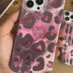 قاب موبایل آیفون پلنگی صورتی قلب هانی