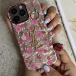 قاب موبایل ( آیفون – سامسونگ ) سن لورن شکوفه گل رز + آویز گل رز