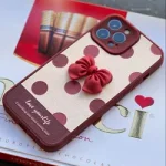 قاب موبایل آیفون خال خالی زرشکی پاپیون خمیری برجسته محافظ لنزدار