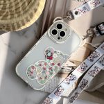 قاب موبایل آیفون خرس بهاری گوش دار پشت بیرنگ + بند آویز بلند
