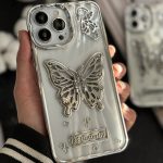 قاب موبایل سلام خرسی شاینی نقره ای + بند بلند آویز