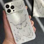 قاب موبایل آیفون چرم و جیر طوسی اسمایل محافظ لنزدار