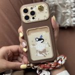 قاب موبایل آیفون فندی چرمی قفل فلزی جاکارتی + بندست بلند
