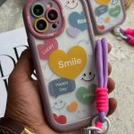قاب موبایل آیفون لبخند قلبی محافظ لنزدار + بندست