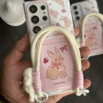 قاب موبایل سامسونگ خرگوش توت فرنگی پاپیون آویز و بند عروسکی