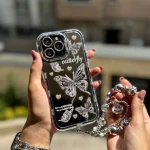 قاب پروانه آینه ای با آویز و محافظ لنز نگین دار (کدC1786)