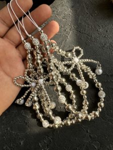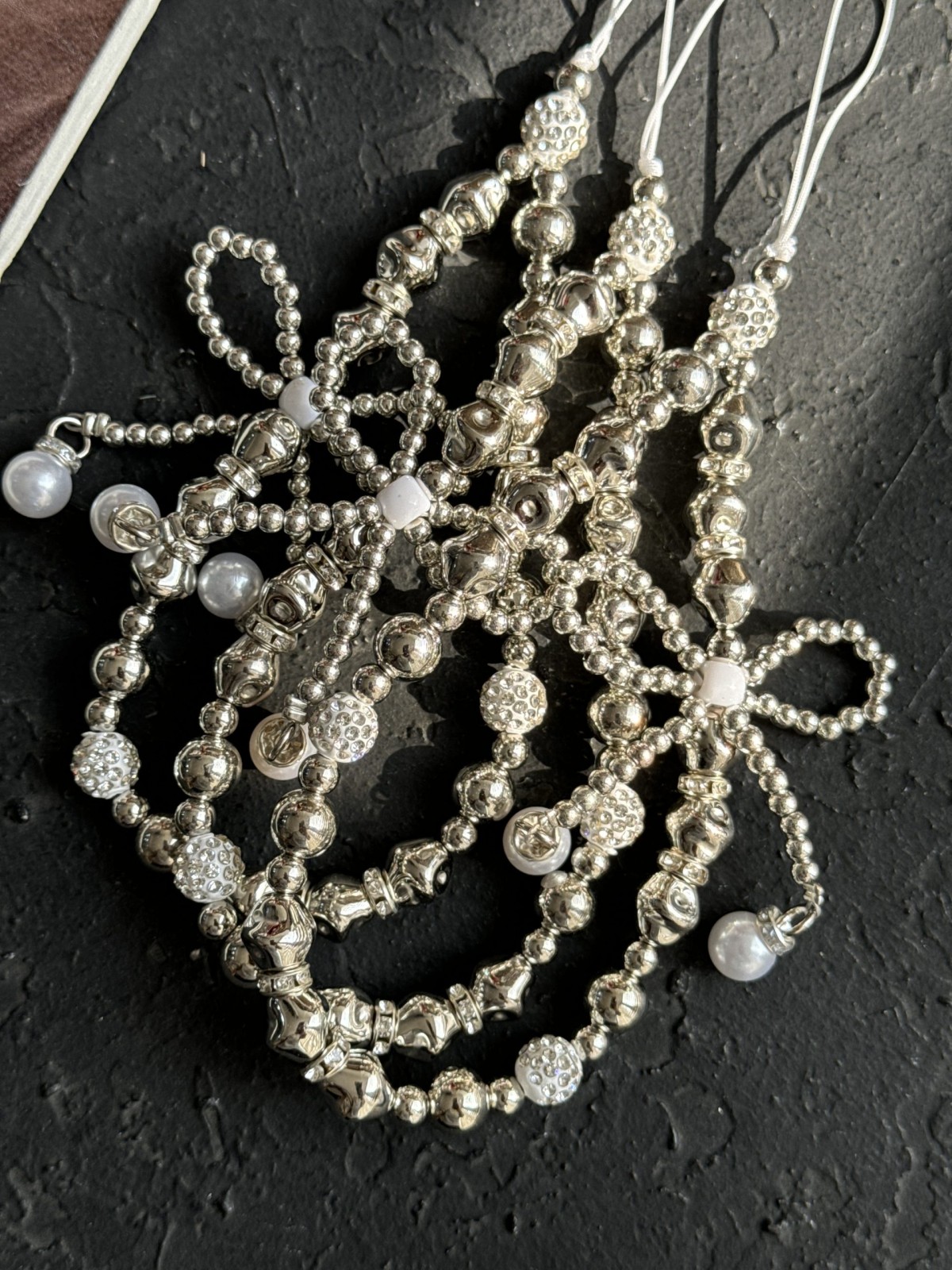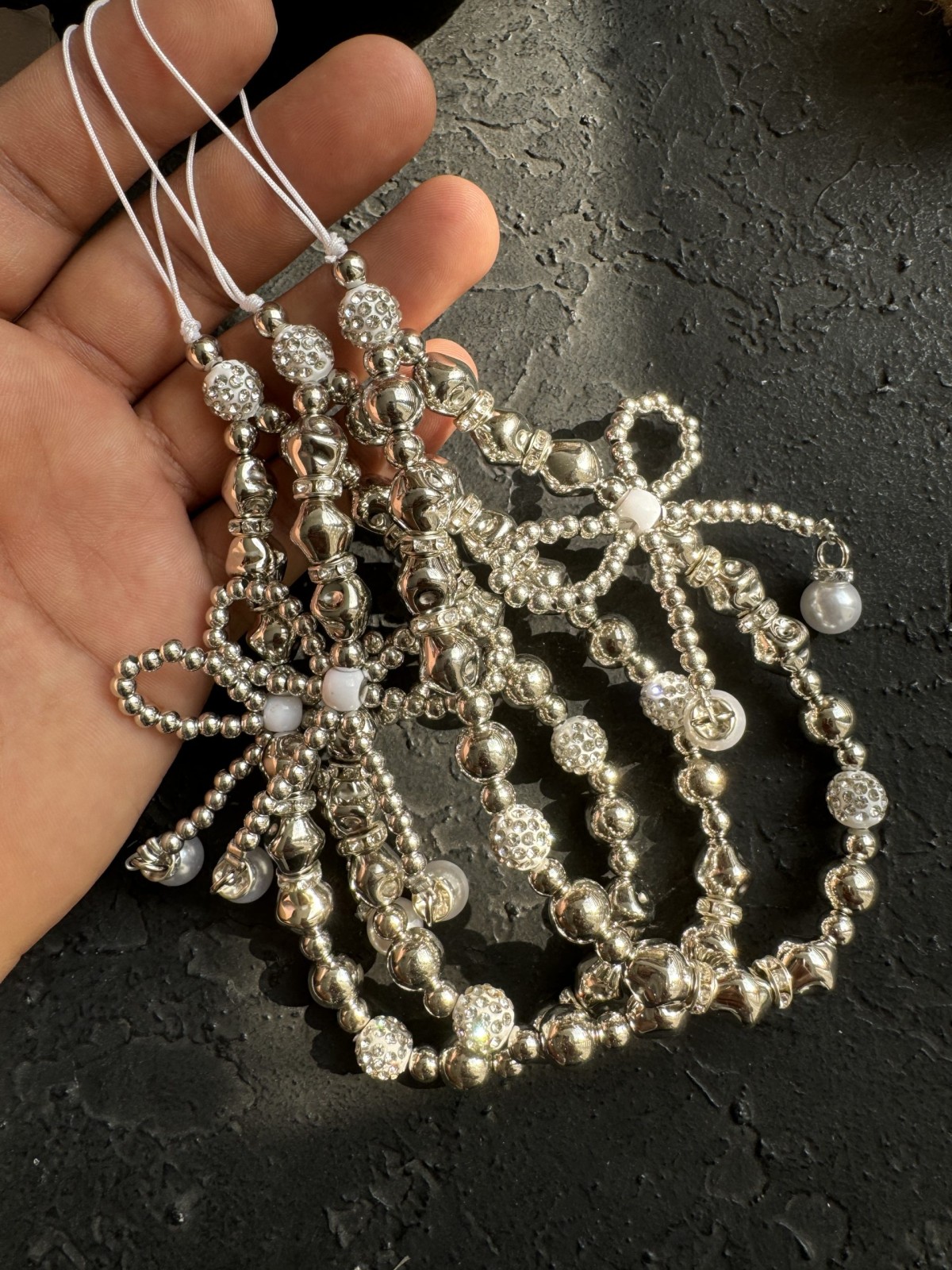 قاب موبایل آیفون بونات پاپیون شاینی نقره ای تک مروارید