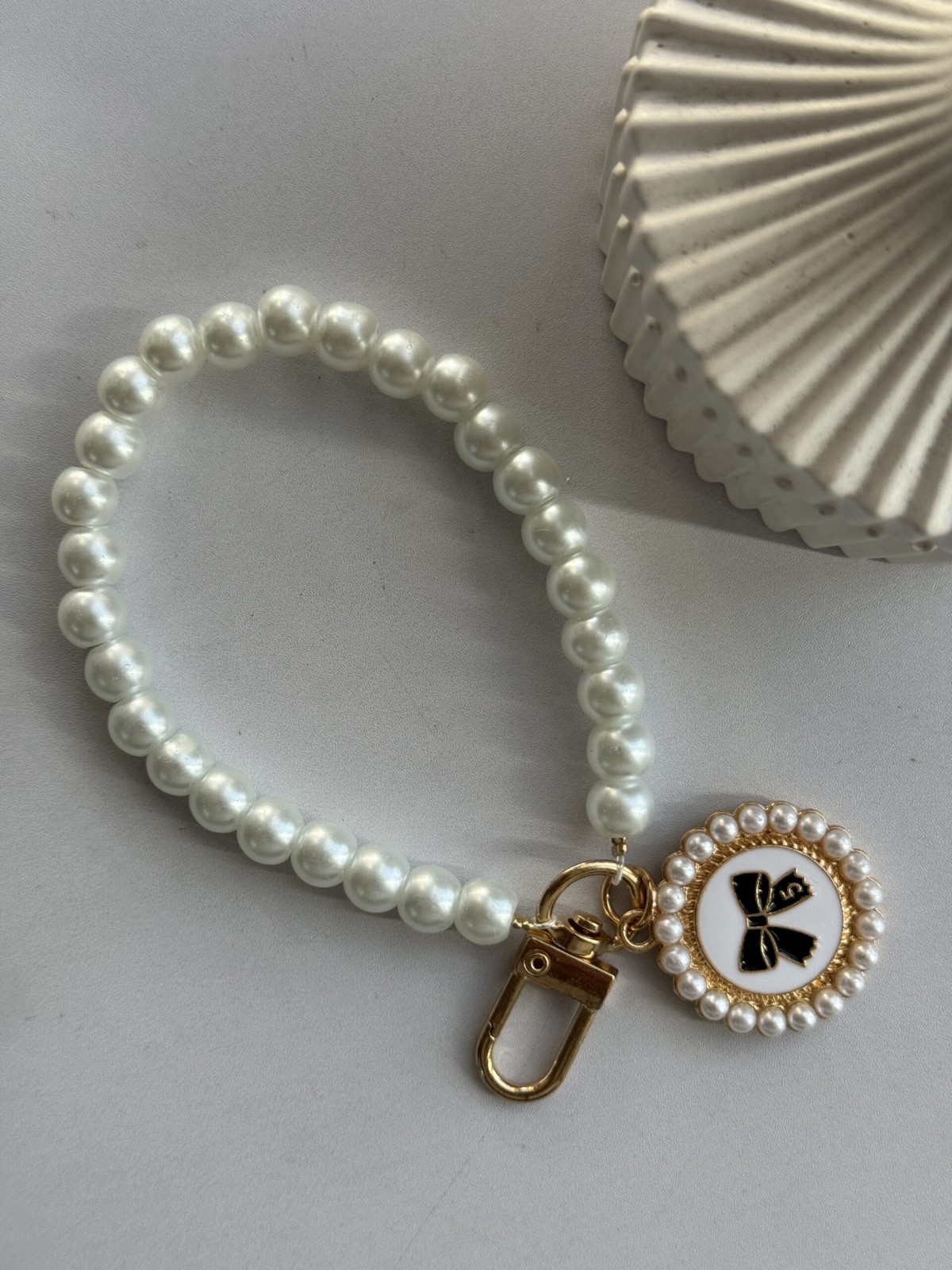 قاب موبایل آیفون گل فلاور کرم فندقی + بند چرمی ست