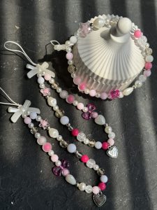 قاب موبایل آیفون دم روباهی پروانه گل سرخ + بندست پشمی