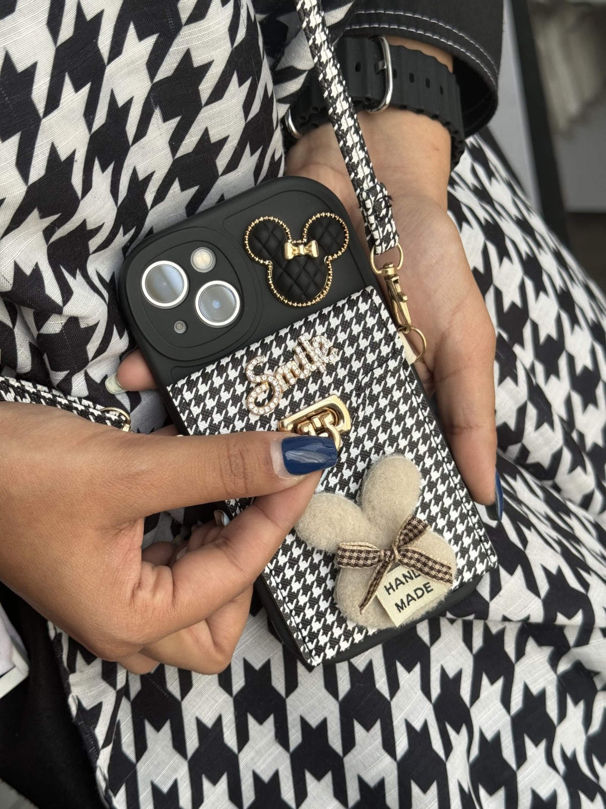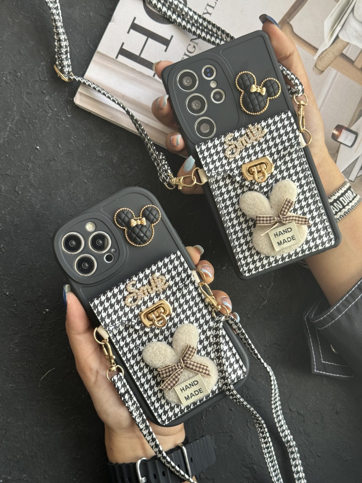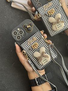قاب موبایل آیفون دم روباهی پروانه گل سرخ + بندست پشمی