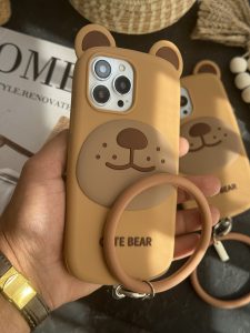 قاب موبایل آیفون خرس بانمک سیلیکونی همراه آویز ست