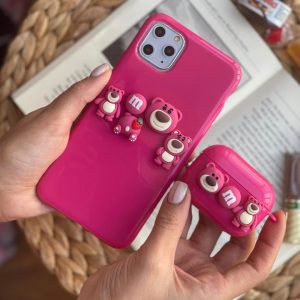 قاب موبایل آیفون خرس صورتی برجسته خمیری یوگی