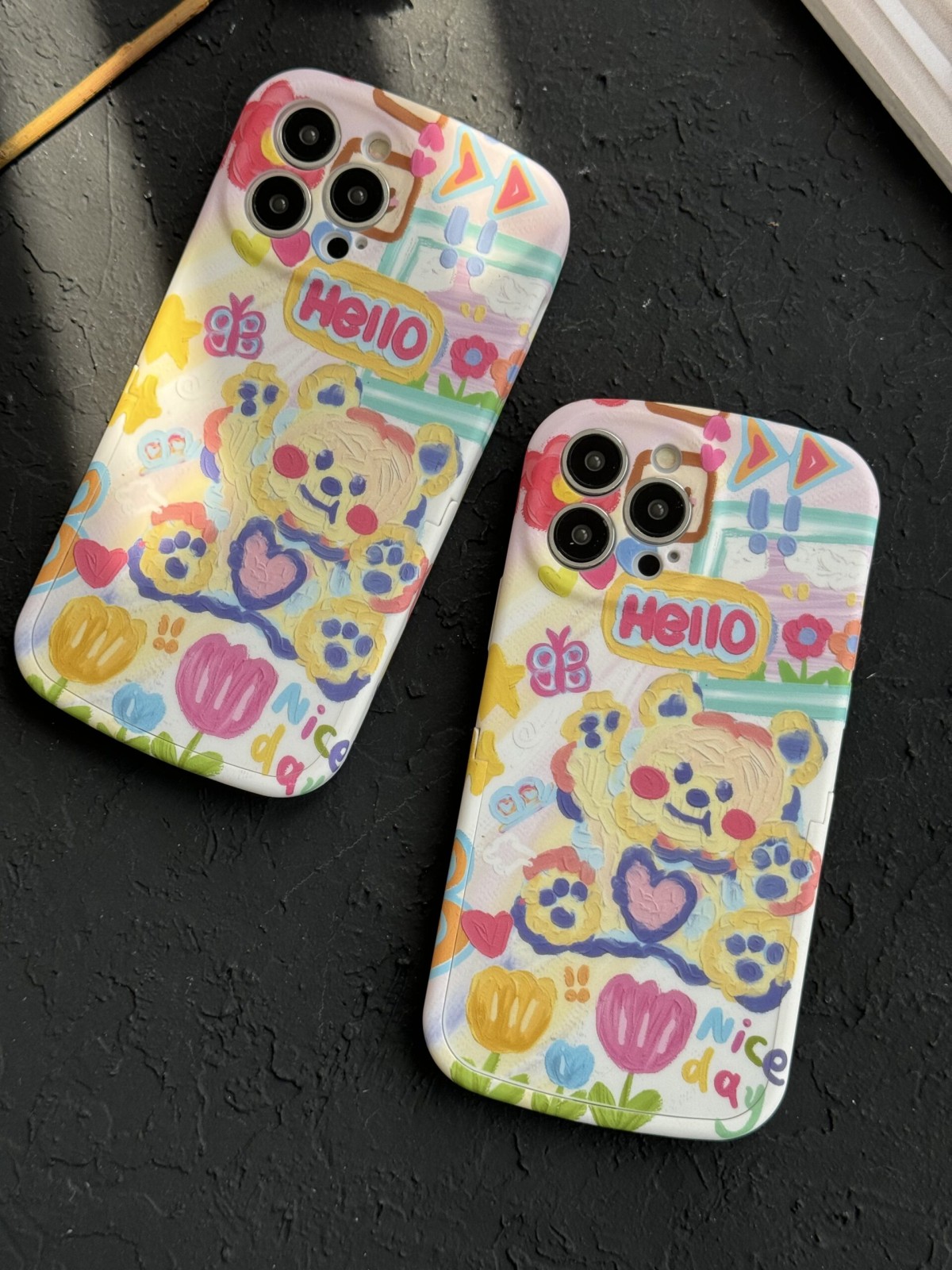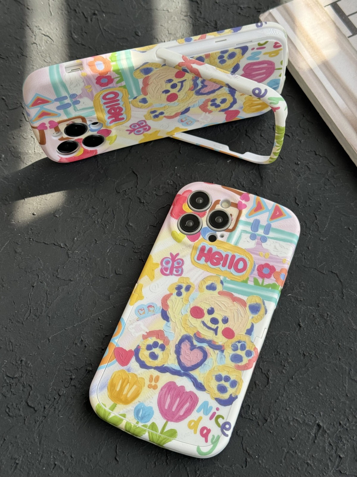 قاب موبایل آیفون خرس نقاشی آبرنگی پایه استند دار