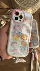 قاب موبایل آیفون خرس چوکوبوبو کافی دونات + بند جیگولی
