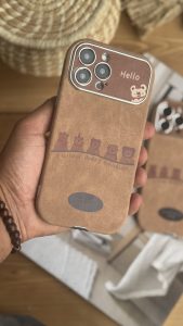 قاب موبایل آیفون گل فلاور کرم فندقی + بند چرمی ست