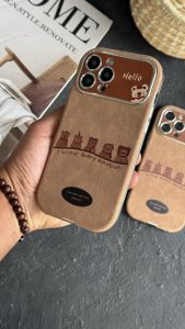 قاب موبایل ( آیفون ) گل رز فلورا قهوه ای + بندست چرمی