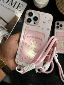 قاب موبایل آیفون خرگوش بانی گاردن گل رز ریز جاکارتی و بندست