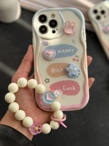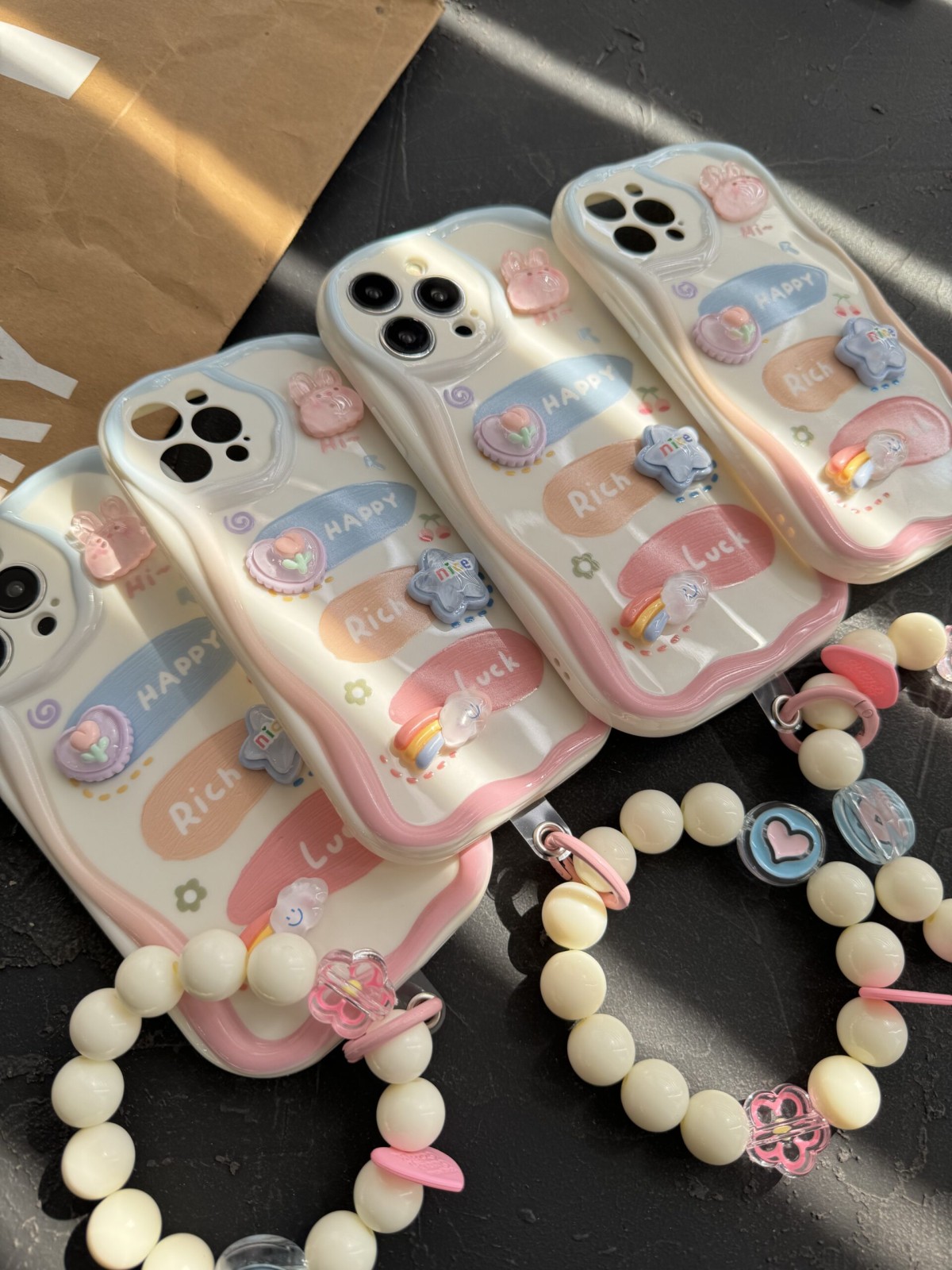 قاب موبایل آیفون خرگوش ستاره خوش شانس رنگ پاستیلی + بند ست