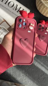 قاب موبایل ( آیفون ) دختر آلبالویی پاپیونی قلب برجسته