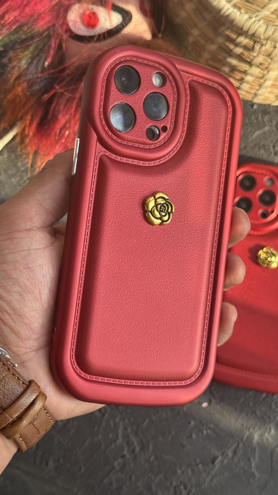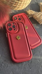 قاب موبایل ( آیفون ) گل رز فلورا قهوه ای + بندست چرمی