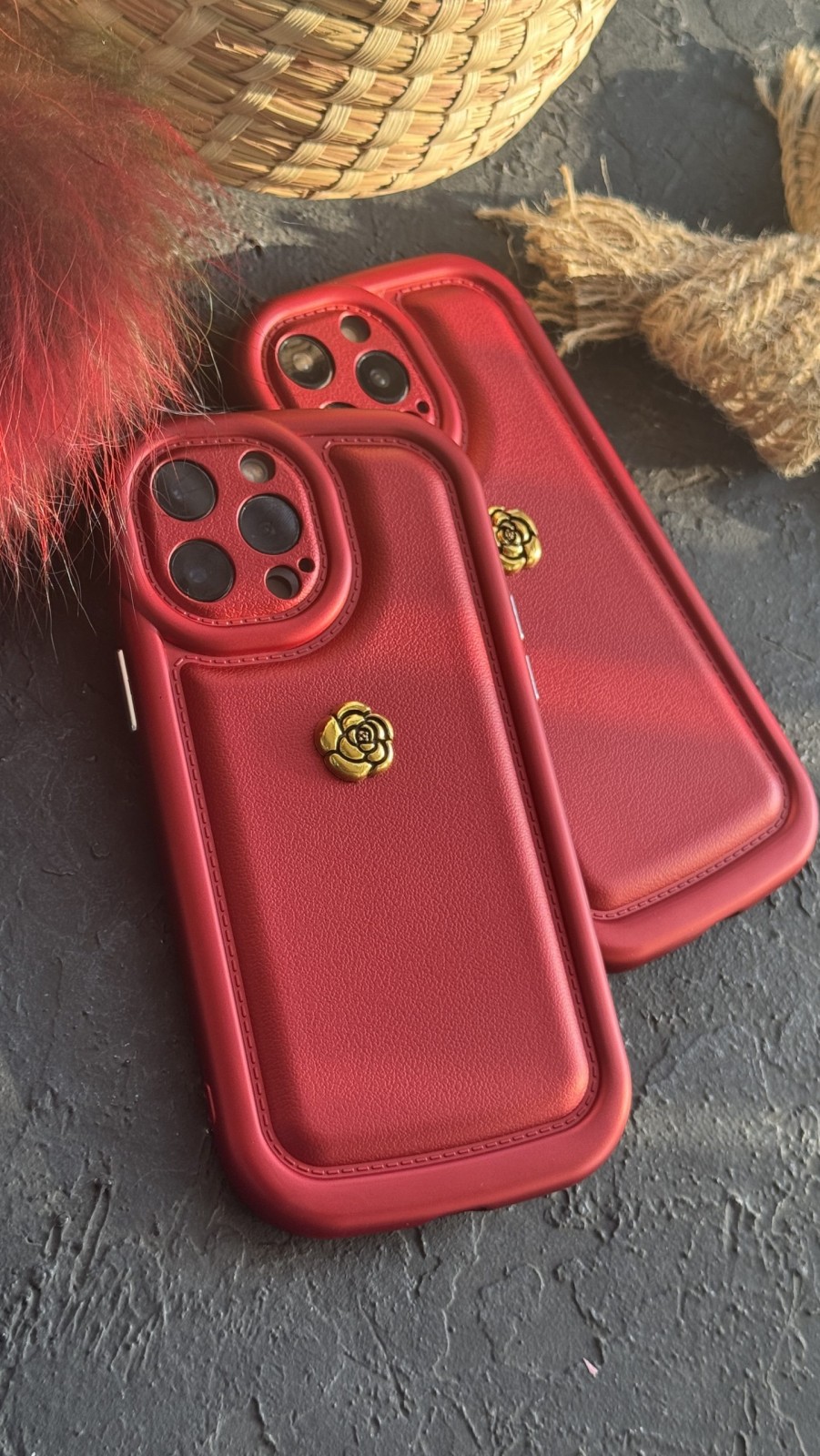 قاب موبایل آیفون دم روباهی پروانه گل سرخ + بندست پشمی