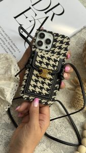 قاب موبایل آیفون زبرا پارچه ای جاکارتی سلین + بندست بلند