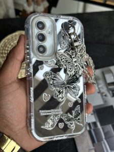 اگر به دنبال یک قاب خاص، شفاف و در عین حال براق هستید، قاب موبایل آیفون سامسونگ پروانه و قلب آیینه ای آویز دار دقیقاً همان چیزی است که باید داشته باشید. این قاب با طراحی فوق‌العاده ظریف، تلفیقی از جلوه آینه‌ای، پروانه‌های درخشان و قلب‌های فانتزی است که در اولین نگاه، حس ظرافت و خاص بودن را منتقل می‌کند.