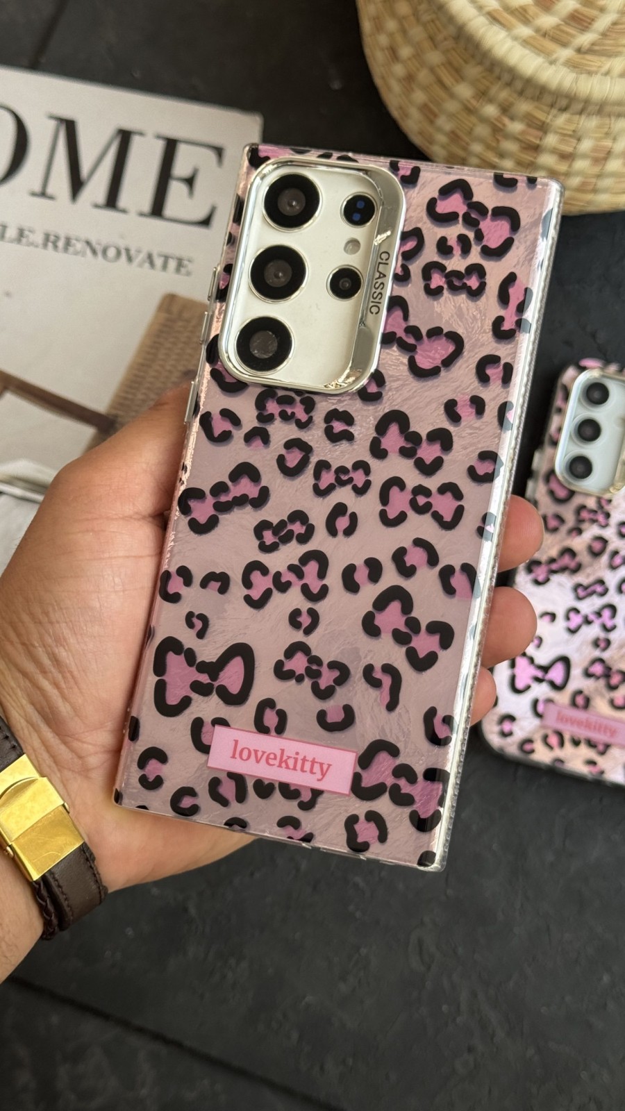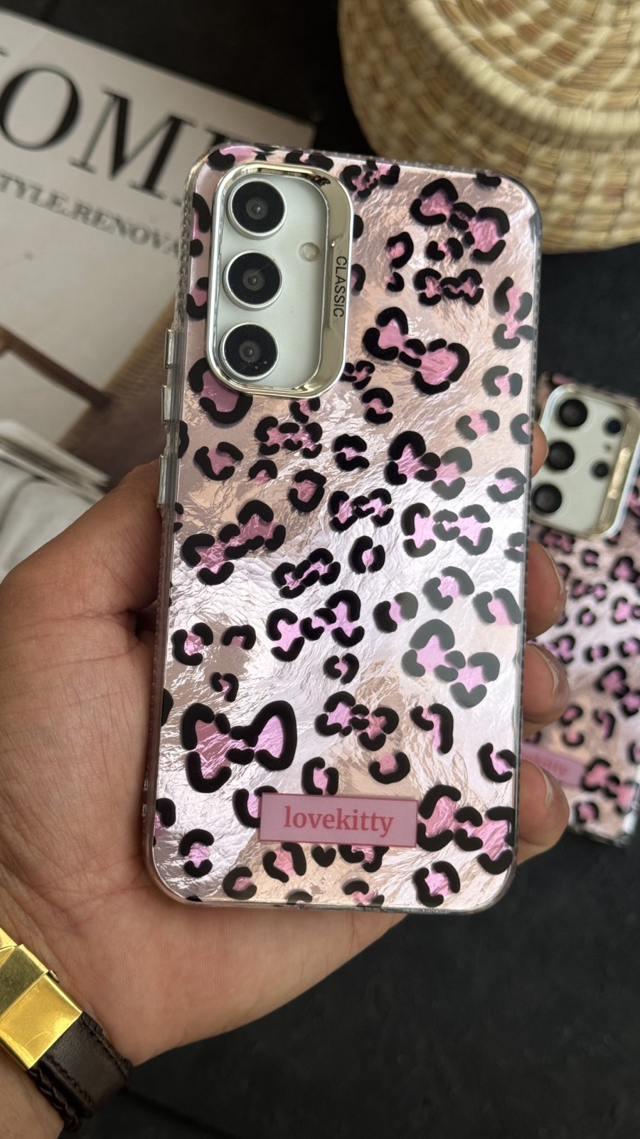 قاب موبایل ( آیفون – سامسونگ ) پلنگی صورتی پاپیون لاوکیتی