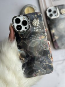 قاب موبایل آیفون سنگ ماربل دودی گل برجسته