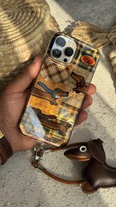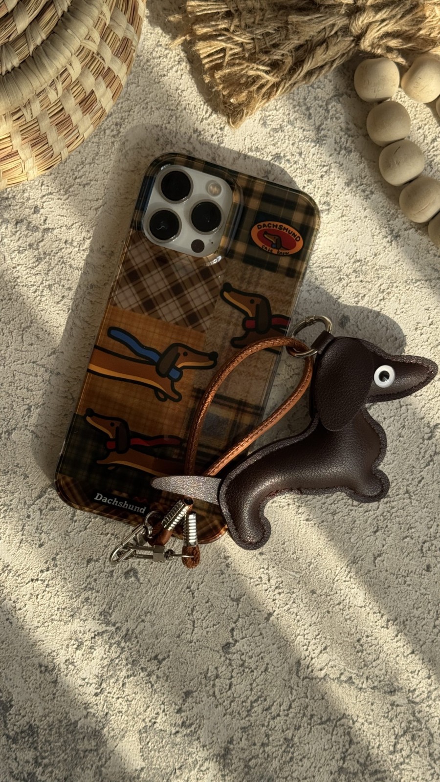 قاب موبایل ( آیفون ) سگ چرمی داکس هوند چهارخونه سه بعدی + بندست