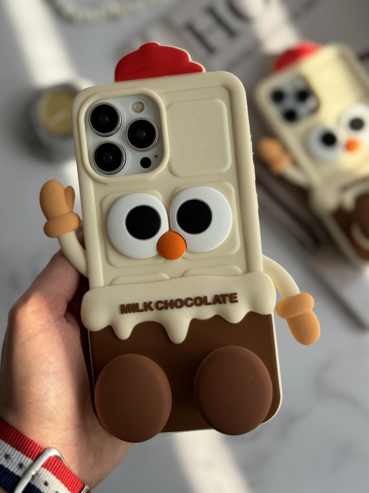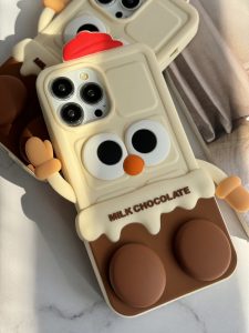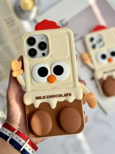 قاب موبایل آیفون شکلات شیری سیلیکونی پا استندشو