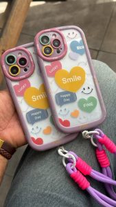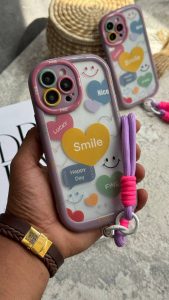 قاب موبایل آیفون لبخند قلبی محافظ لنزدار + بندست