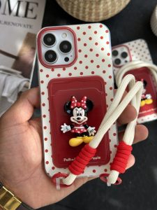 قاب موبایل آیفون میکی برجسته خال خالی جاکارتی بنددار