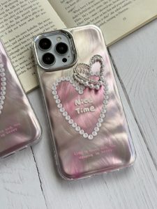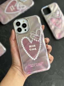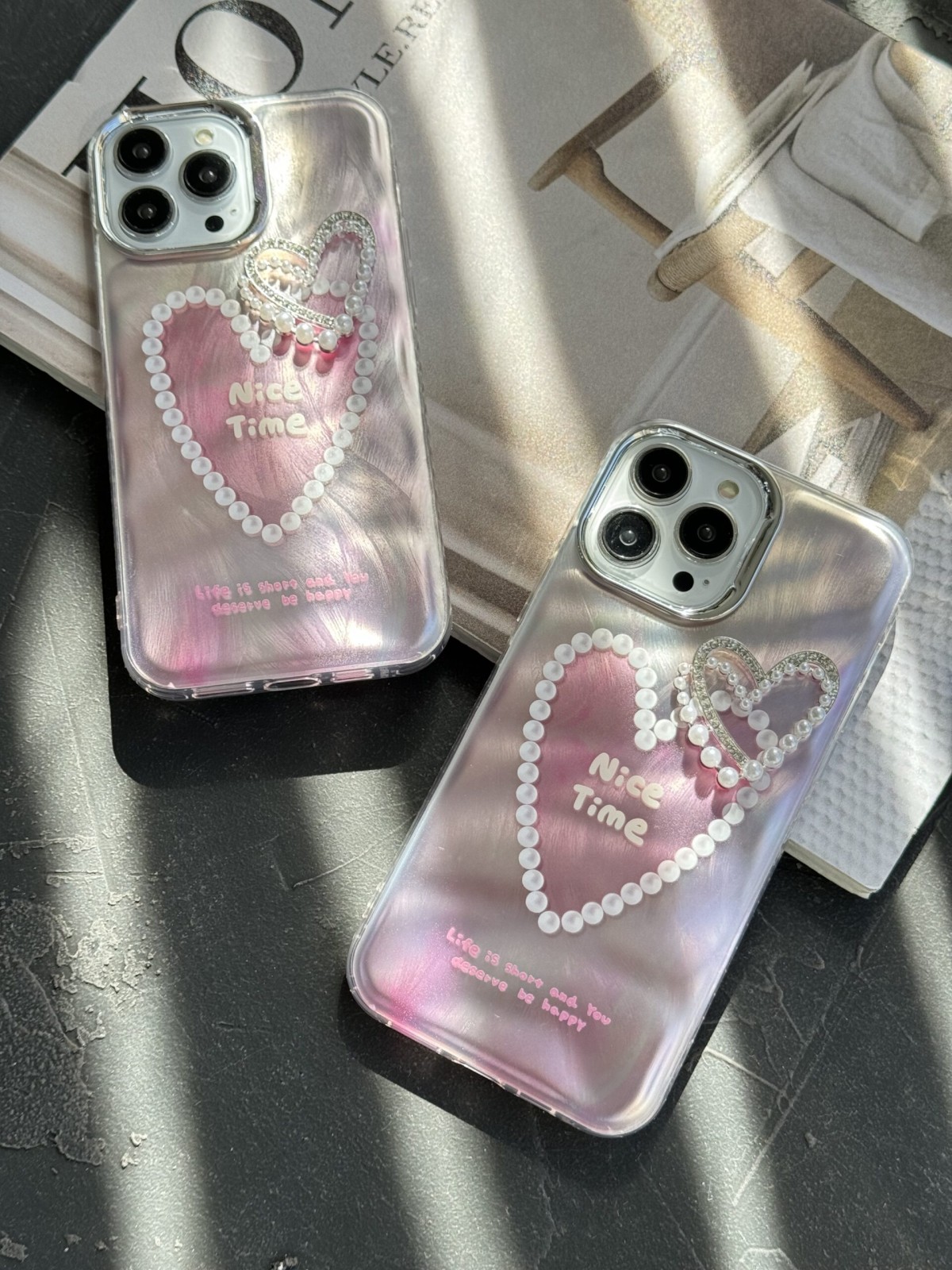 قاب موبایل آیفون نایس تایم قلب مرواریدی برجسته
