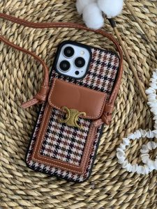 قاب موبایل ( آیفون ) گل رز فلورا قهوه ای + بندست چرمی