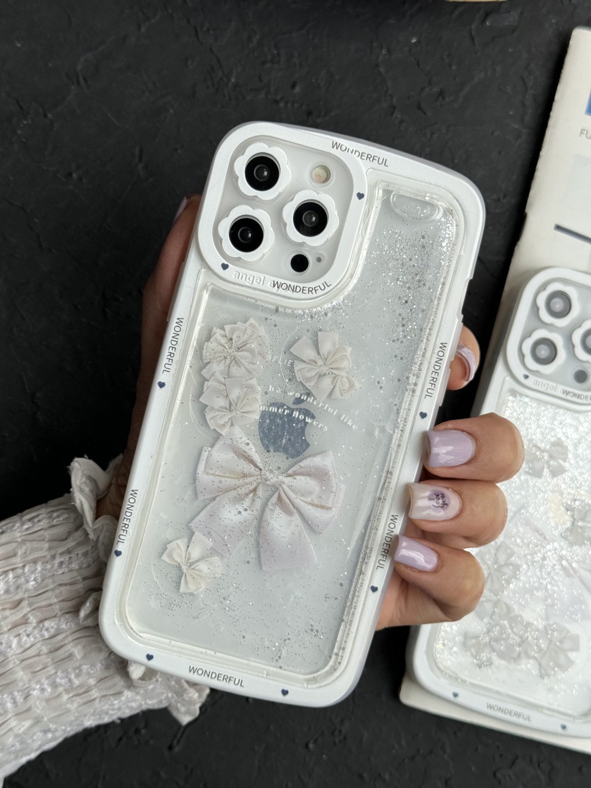 قاب موبایل آیفون دم روباهی پروانه گل سرخ + بندست پشمی