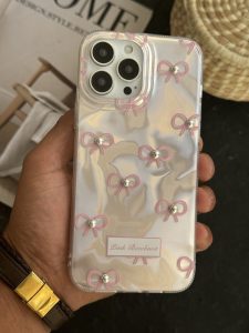 قاب موبایل آیفون پاپیون شاینی صورتی نگین برجسته