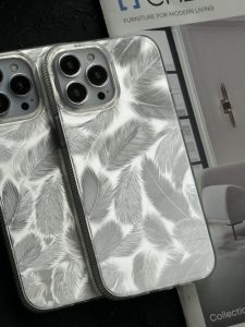 قاب موبایل آیفون پر مرغ عشق نقره ای هلوگرامی