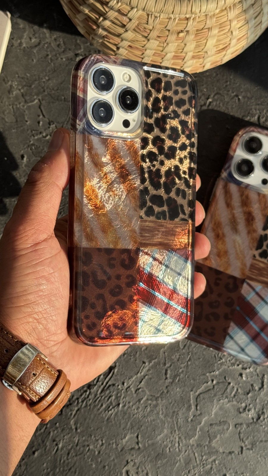 قاب موبایل ( آیفون ) پلنگی چهارخونه بافتنی