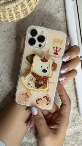 قاب موبایل آیفون کندل کریسمس سگ پاپی + پاپسوکت متحرک