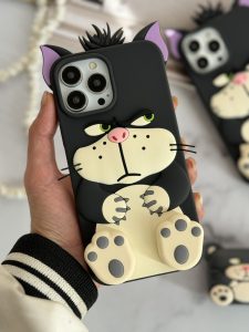قاب موبایل آیفون گربه سیبیلو شرور پا استندشو