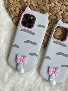 قاب موبایل آیفون گربه سیلیکونی دم پاپیون دار