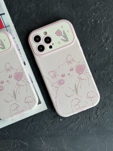 قاب موبایل آیفون دم روباهی پروانه گل سرخ + بندست پشمی