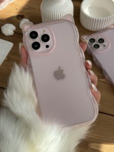 قاب موبایل آیفون دم روباهی پروانه گل سرخ + بندست پشمی