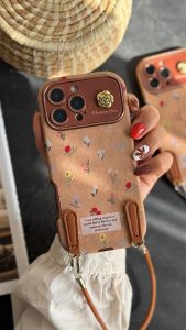 این قاب از جنس جیر مرغوب با بافت نرم و مقاوم ساخته شده است که هم در لمس حس لطافت دارد و هم در برابر خط و خش مقاوم است. گل‌های ریز رنگی روی سطح قاب با دقت چاپ شده‌اند تا جلوه‌ای طبیعی و هنرمندانه ایجاد کنند. جزئیات طلایی اطراف دوربین و گل فلزی کوچک روی قاب، حس خاص بودن و لاکچری بودن را تکمیل می‌کند.