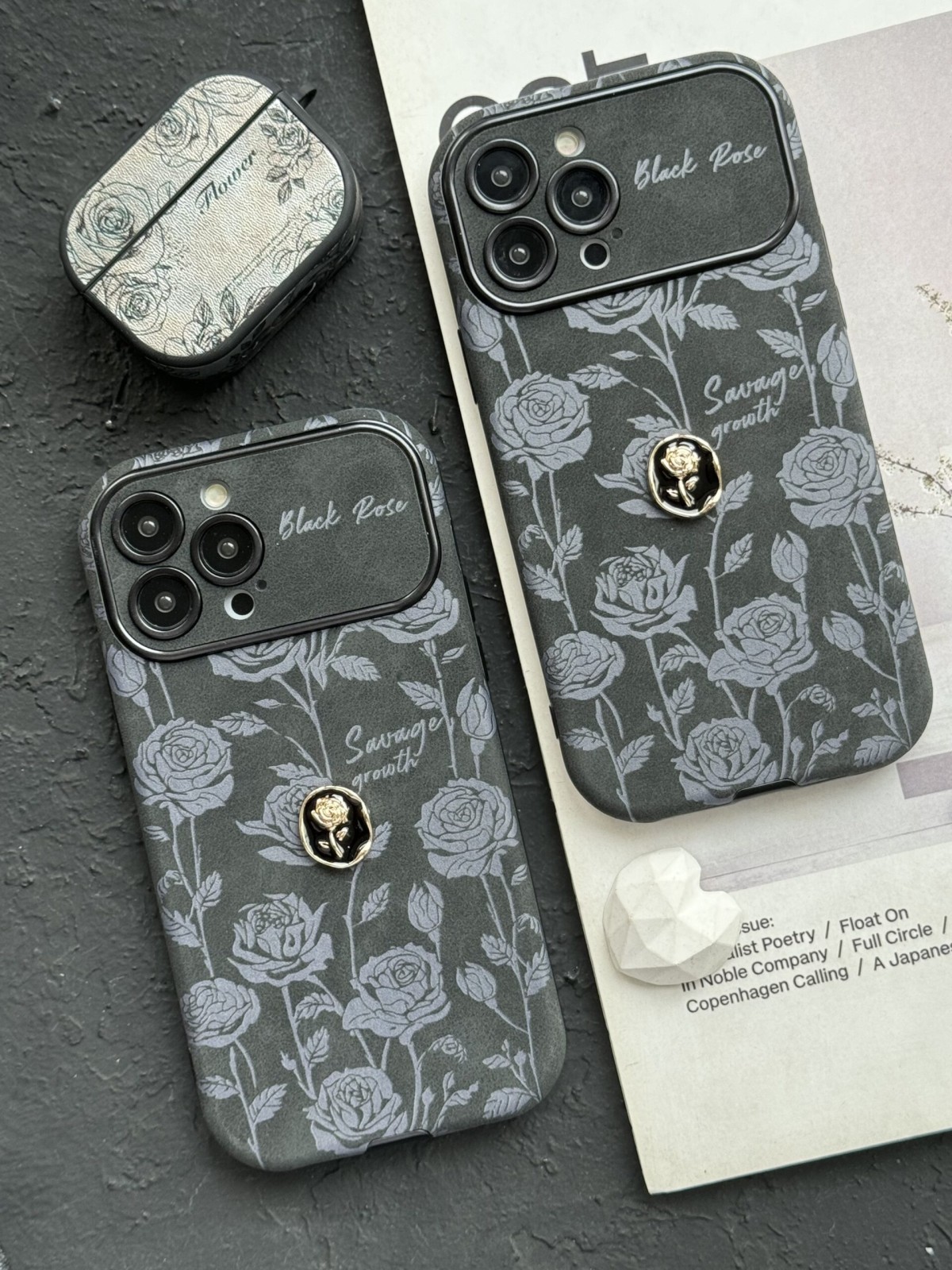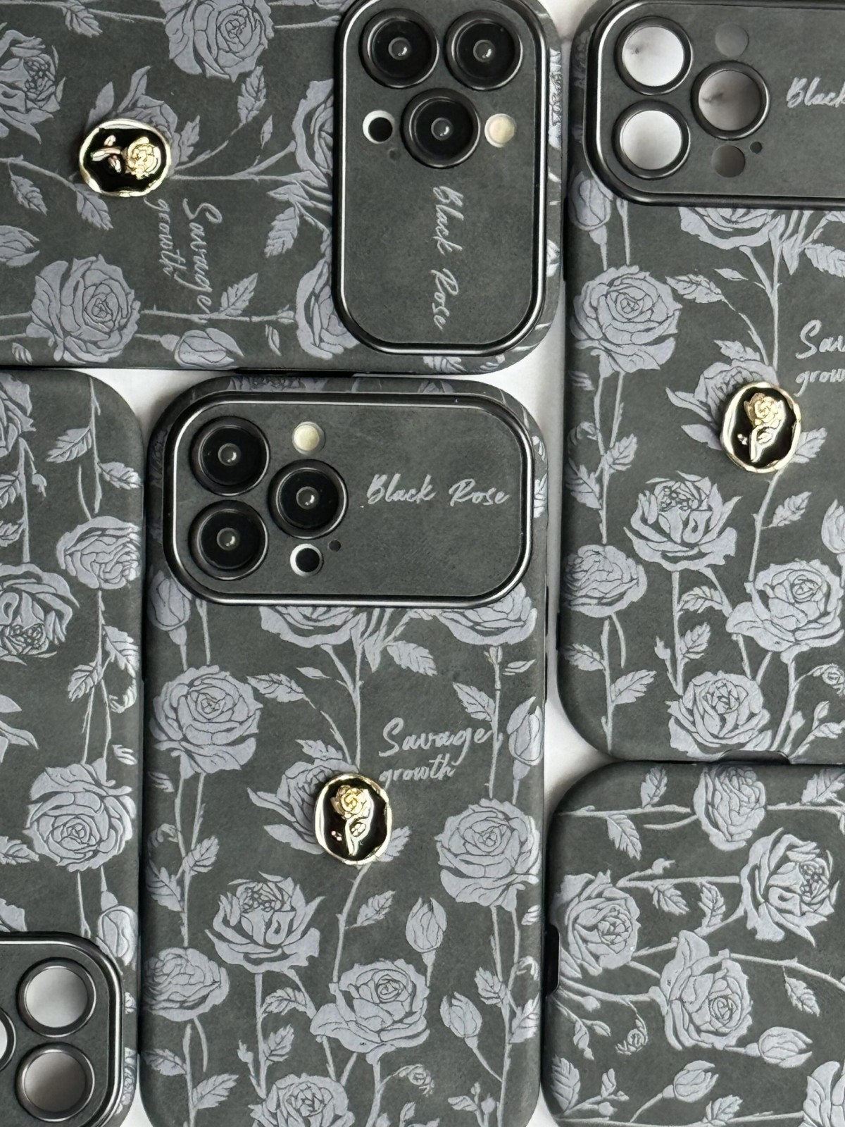 قاب موبایل ( آیفون ) گل رز فلورا قهوه ای + بندست چرمی