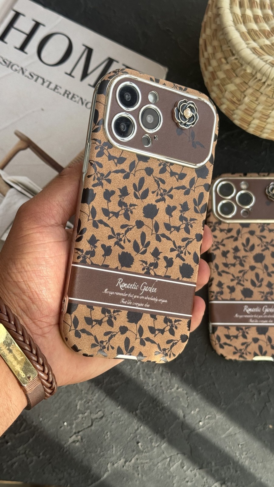قاب موبایل آیفون گل رز رمانتیک گاردن قهوه ای