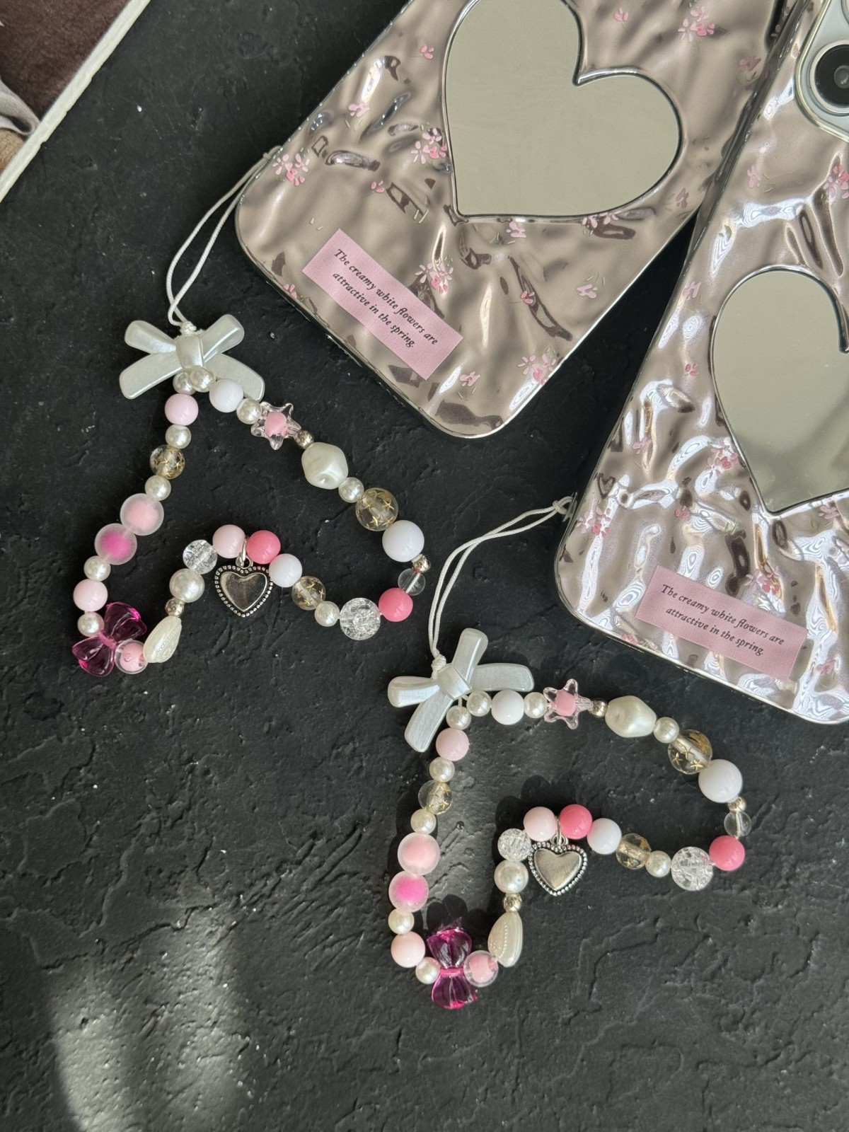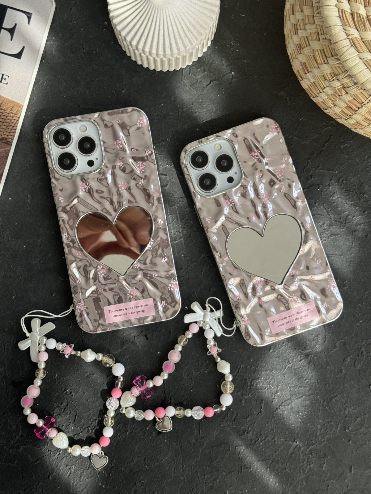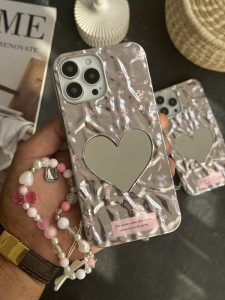قاب موبایل آیفون گل ریز قلب آیینه ای موج دار رزگلد ( بدون بند )